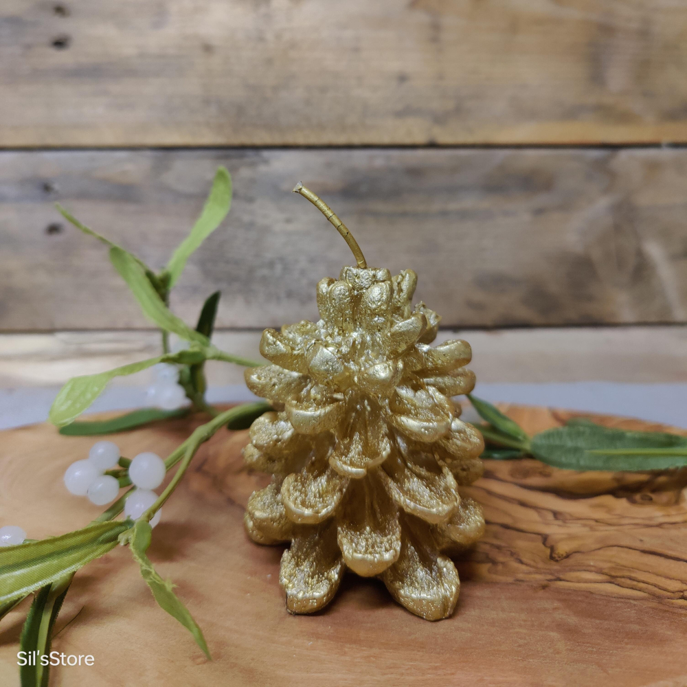 Goudkleurige kaars in de vorm van een dennenappel uit de collectie van Brynxz.