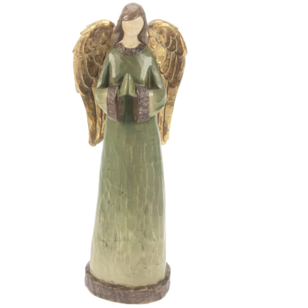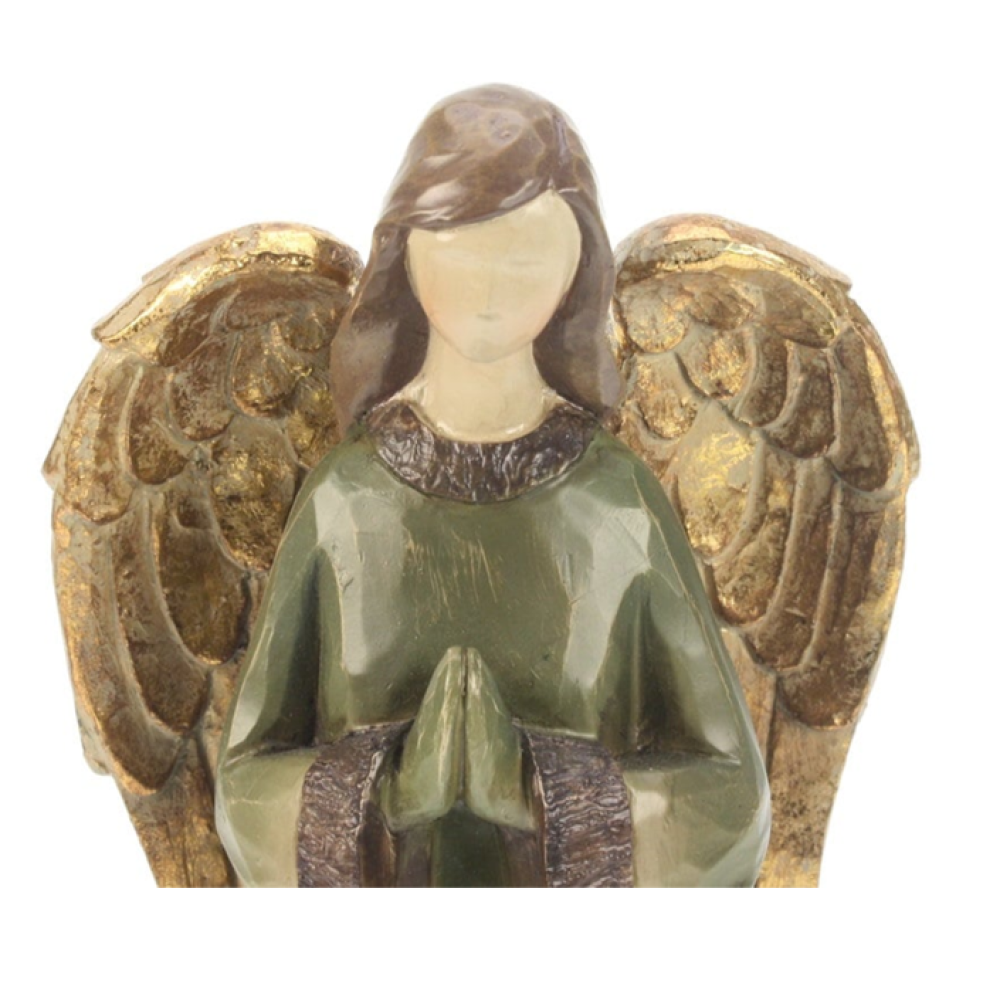 Prachtige engel gemaakt van polyresin met een uitstraling alsof het van hout gemaakt is.