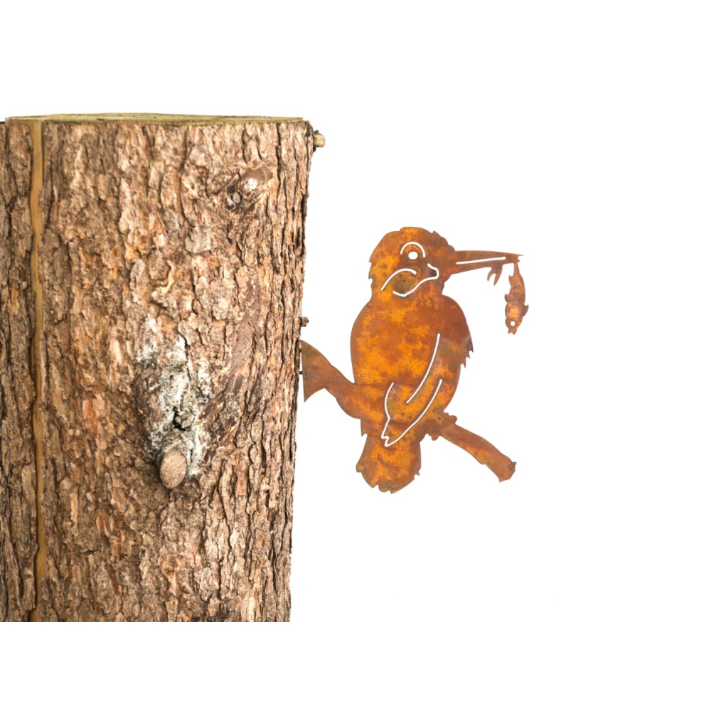 Deze ijsvogel is een en leuk sieraad voor in de boom of aan het hek. De boomschroef is gemaakt van eco-roest, dit betekent dat het ijzer behandeld is waardoor het roestproces eerder in gang is gezet om het metaal een warme uitstraling te geven. En wat mooi is is dat het een natuurlijke grondstof betreft en hierdoor 100% recyclebaar.