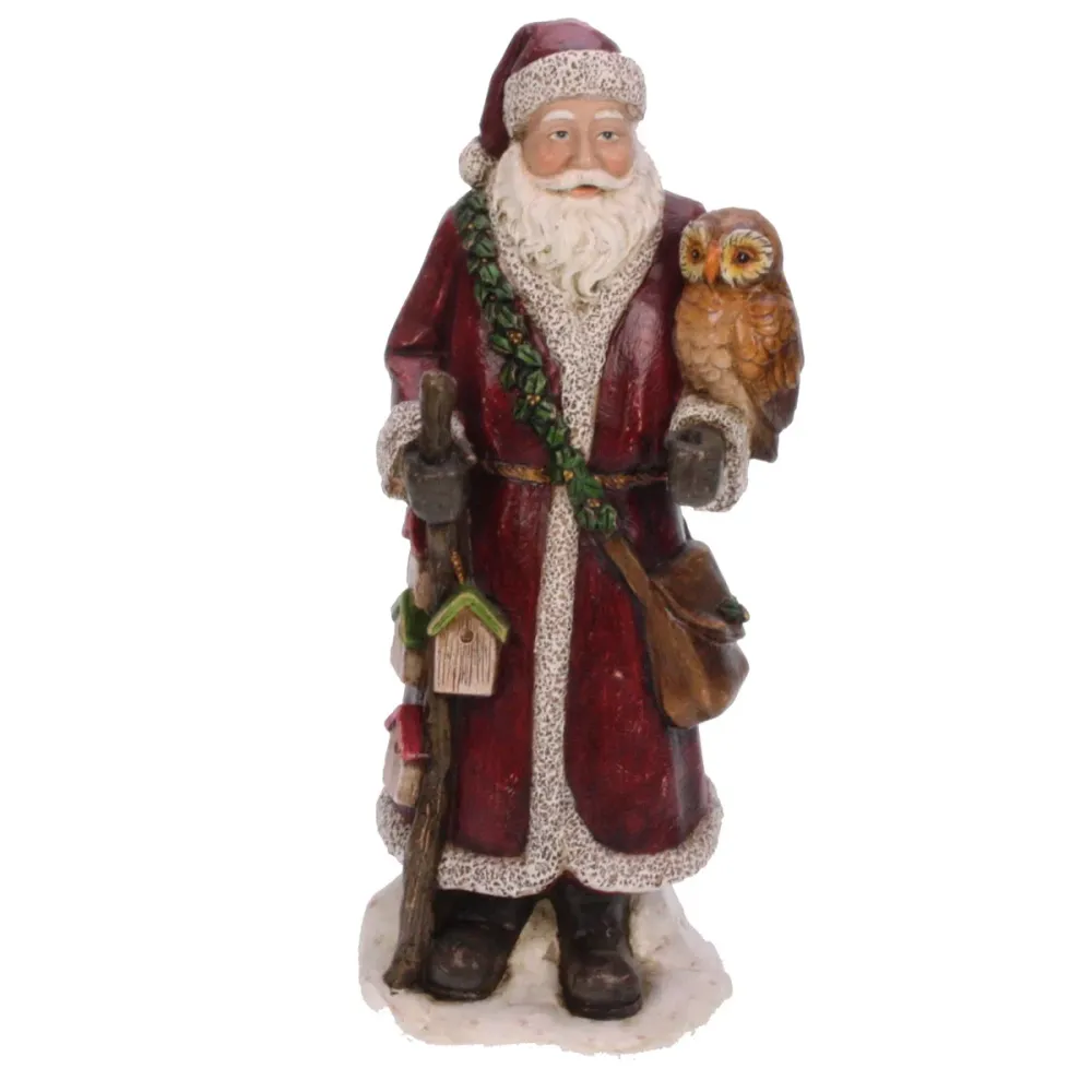 Een prachtig gedetailleerde kerstman met uil op zijn arm. afmeting: 13 x 9 x 32 cm