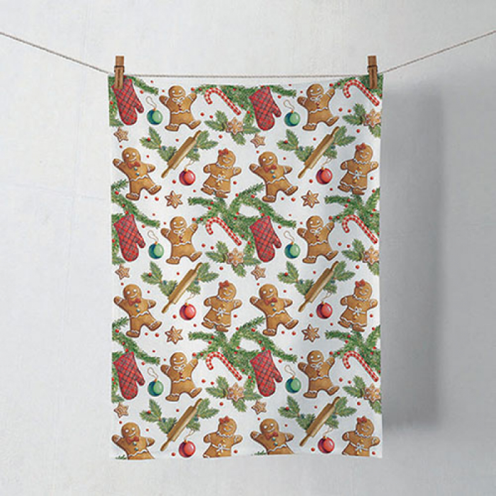 Leuk gedecoreerde keukendoek met de afbeelding van gemberkoekjes.
