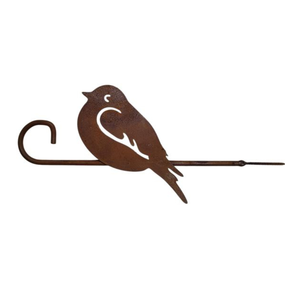 Op de haak zit een 2D roodborstje. Als je er niet van houdt dat het product steeds veranderd omdat het blijft roesten dan kun je het metaal met een blanke lak aflakken.