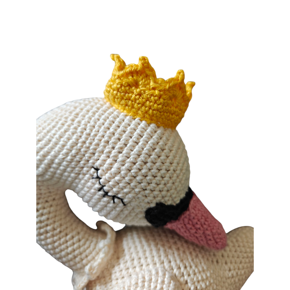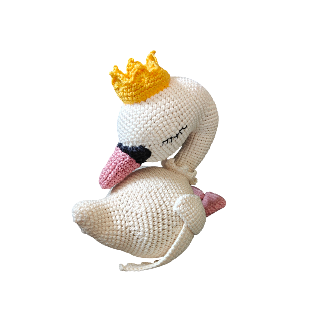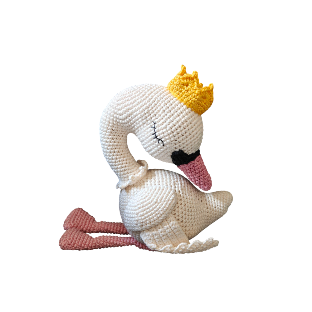 Ontmoet Victoria de Zwaan, een lieve, handgemaakte gehaakte knuffel van ongeveer 20 cm groot. Deze charmante zwaan is met zorg en aandacht gehaakt van 100% katoengaren, waardoor ze heerlijk zacht aanvoelt en veilig is voor kleine kinderhandjes.