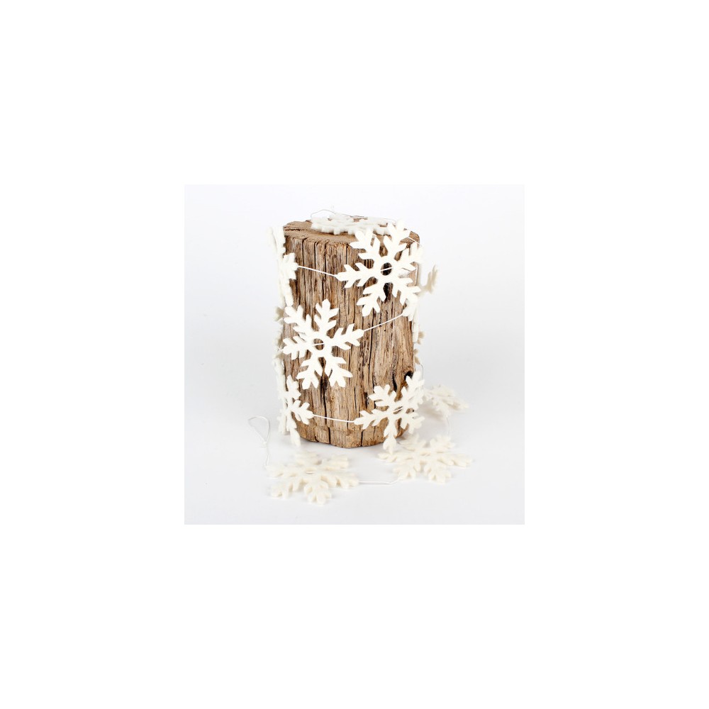 Viltslinger met prachtige sneeuwvlokken, mooi in de kerstboom of als winterdecoratie in huis of in de klas! De doorsnee van de sneeuwvlokken is 10 cm.